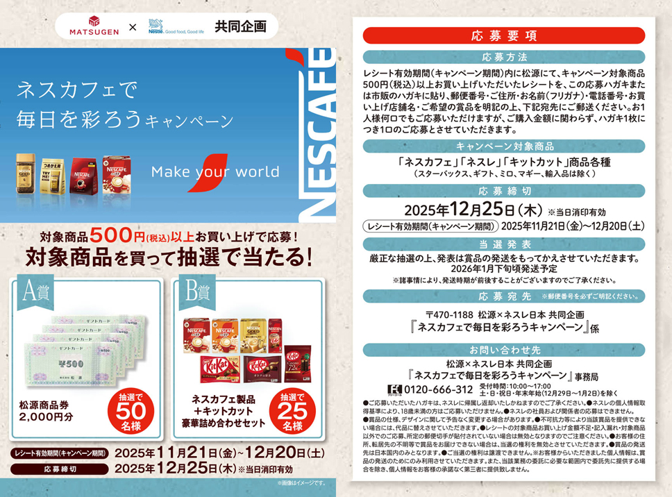 松源×ネスレ「ネスカフェで毎日を彩ろうキャンペーン」