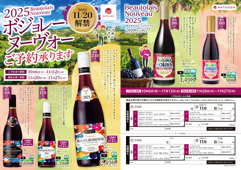 2025年「ボジョレーヌーヴォー」ご予約承り中!