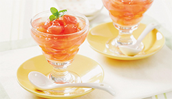 4.グラスに等分に流し入れ、冷蔵庫で冷やし固める。お好みでミントを飾る。