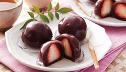 1. こしあんは10等分にして、いちごを包み込むようにして丸く形を整える。バットに間隔を空けて並べ置き、冷蔵庫で冷やす。